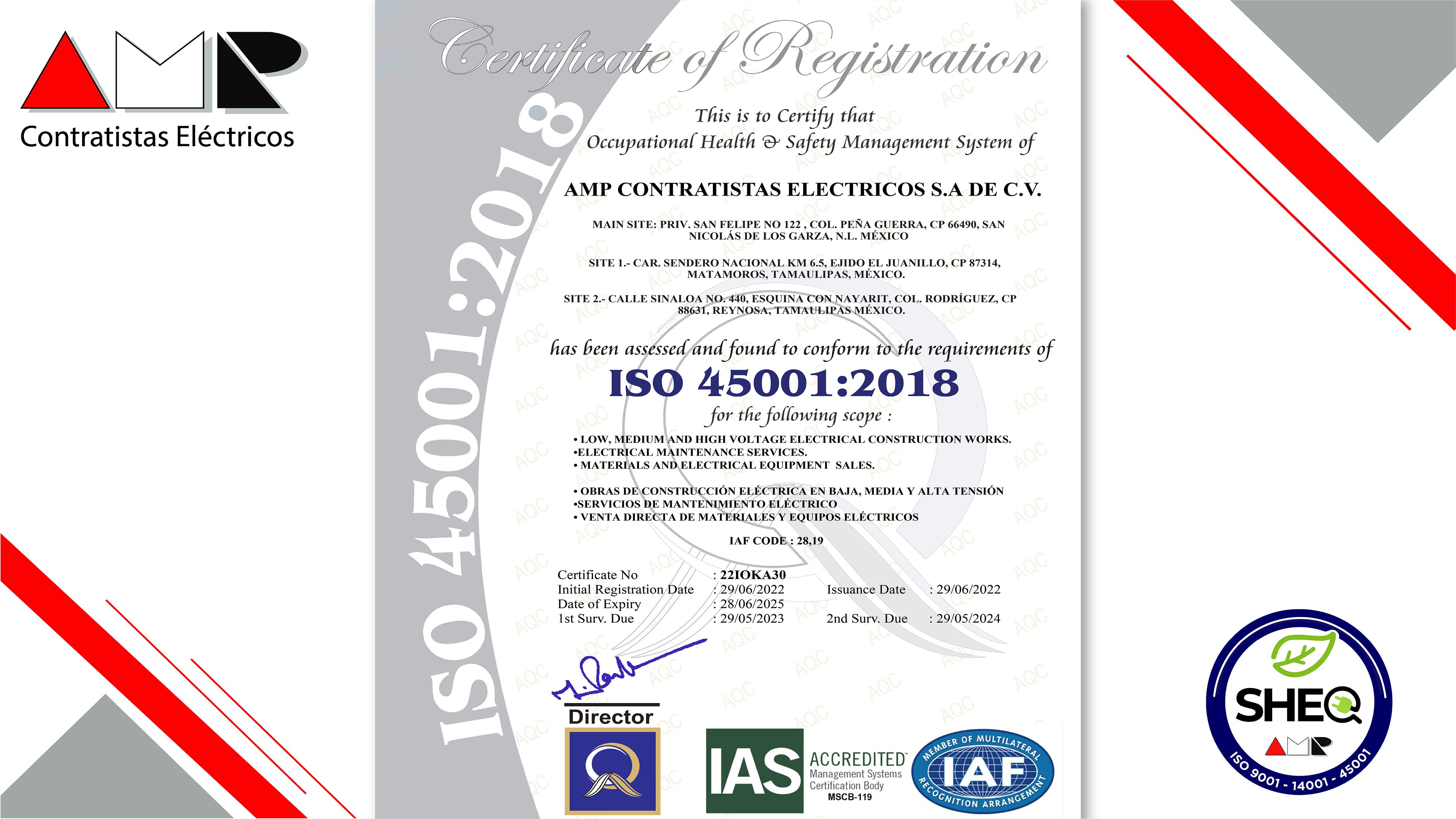 Norma internacional que proporciona el marco de referencia para gestionar y mejorar continuamente la salud y seguridad dentro de nuestra organización.